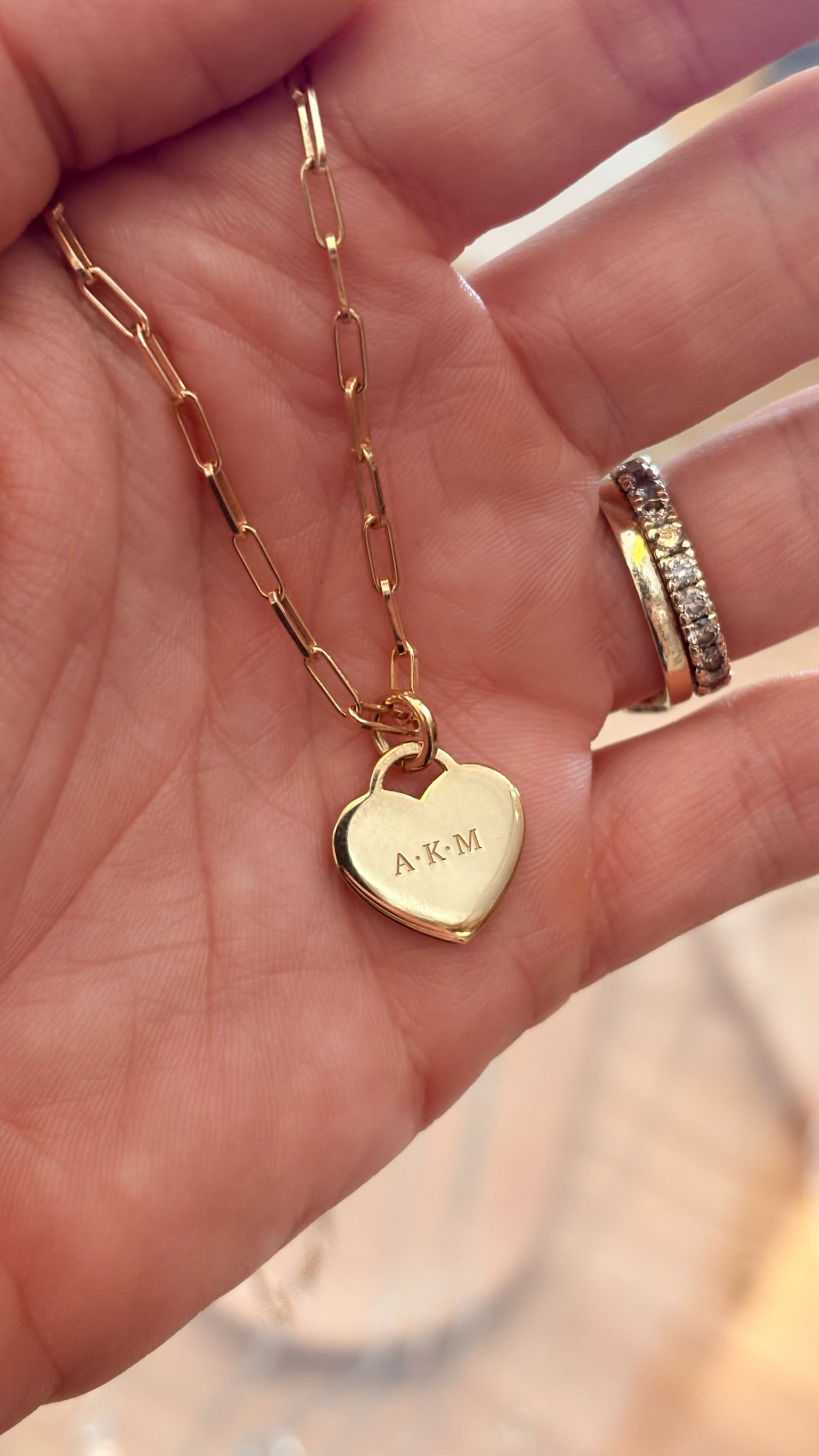 Featuring a delicate gold paperclip chain and a polished heart-shaped pendant, this piece embodies elegance and sentiment in perfect harmony.